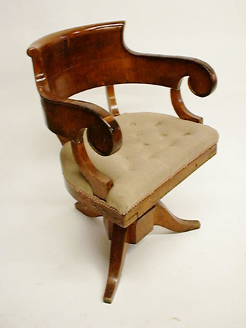 Sessel, Holz, Biedermeier, drehbar mit geknöpftem Leinenpolster