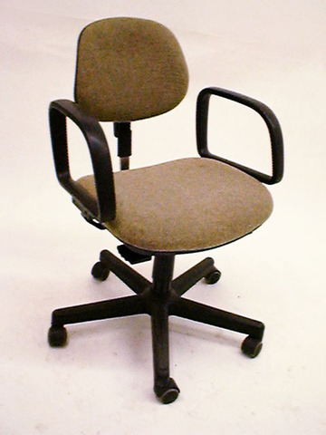 Schreibtischsessel, hellbeige Wolle, mit Armlehnen, Rollenfuss einfach