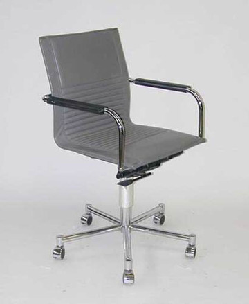 Drehsessel AC, grau Leder, auf Chromgestell, Waffelsitz und -rückenlehne