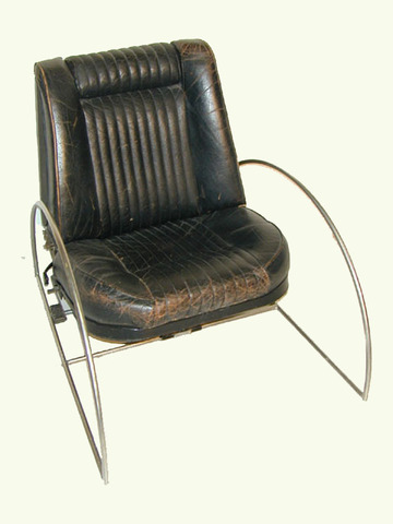 Autositz schwarz Leder, m. Kopfstütze, in Edelstahlgestell, Gebrauchsspuren!!