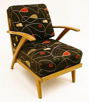 Strippensessel dkl. Nussb., offene Armlehnen