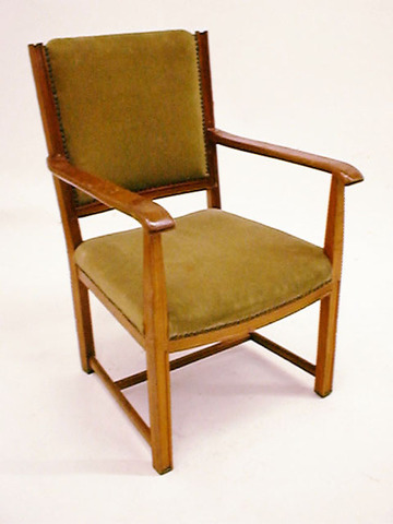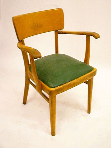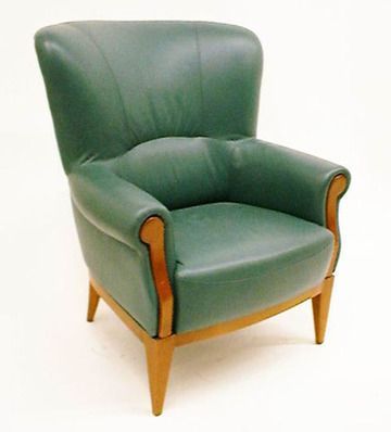 Armlehnsessel, Buche, hell mit grünem Lederpolster, 30erJ.
