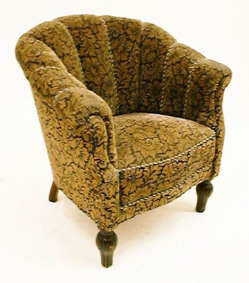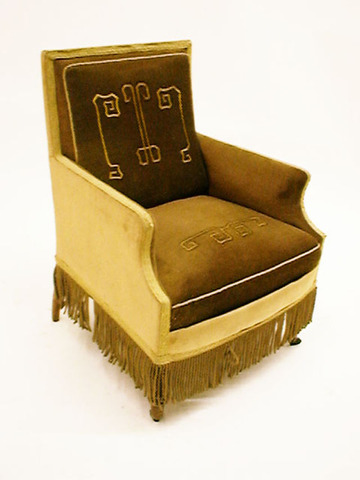 Sessel, Jugendstildekor, goldfarbener Samt/ Franse