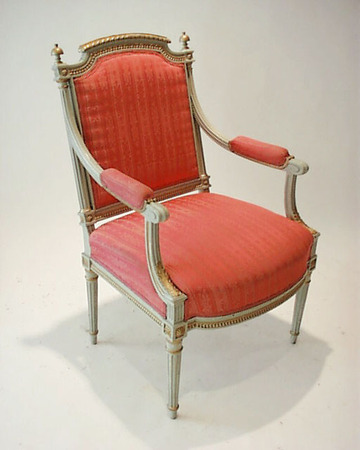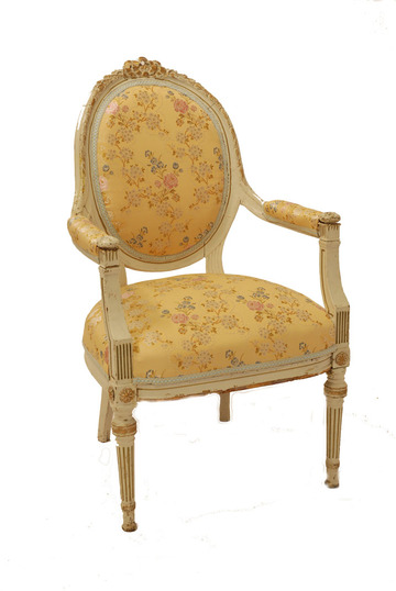 Armlehnsessel Louis XVI, ovale Lehne Polster Seidendamast mit Blumenstickerei