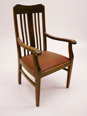Bürosessel, 20erJ., Eichegestell, Sitz-u. Rückenpolst. braun Leder mit Ziernägeln