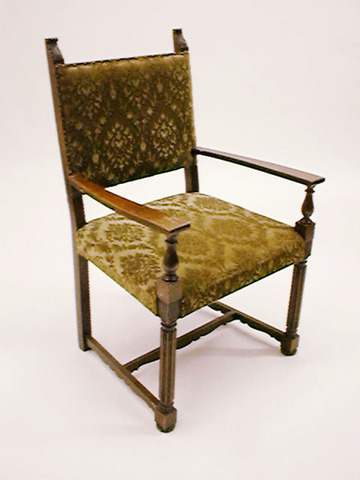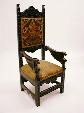 Sessel hochlehnig, Vogelköpfe in Armlehnen, mit Gobelinpolster