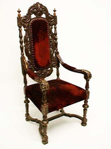 Armlehnsessel Barock, hochlehnig, Gestell braun gestrichen, Polster rot Velours