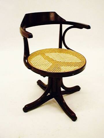 Schreibtischsessel Thonetart Bugholz mahagonifb, offene Lehne u. Rohrgeflechtsitz