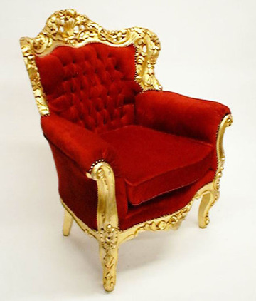 Sessel Barock, Gestell vergoldet reich geschnitzt, Polster rot Velour, 95x80, h 110cm (Sitzhöhe 44cm)