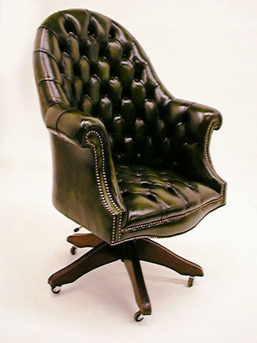 Chefsessel, EKL , Leder grün, halbrunde Lehne, kapituniert, auf Drehgestell