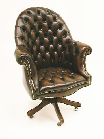 Chefsessel,EKL, Leder braun, halbrunde Lehne, kapituniert, auf Drehgestell, ohne Rollen!
