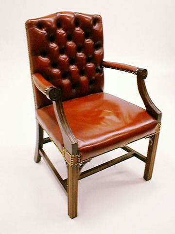 Armlehnsessel engl. rotbraun Leder, kapituniert,Gestell Mahagoni