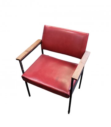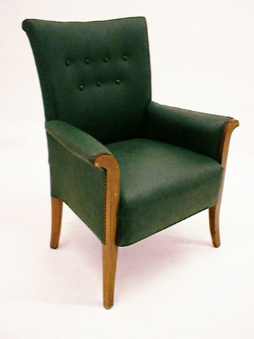 Gerichtssessel 1930 grün Kunstleder kapituniert, Vollpolster