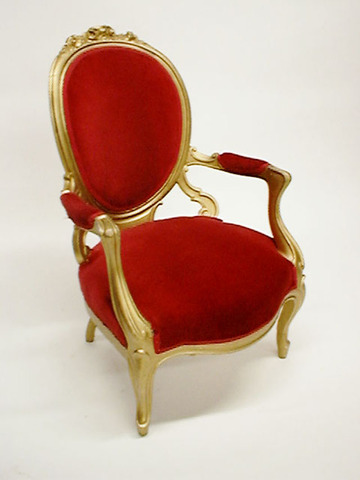 Armlehnsessel goldfarben, Barock, ovale Rücklehne, Polster rot Velours, h ca. 95cm (Sitzhöhe 9cm)