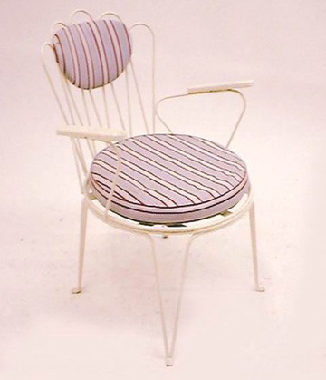 Eisen-/ Gartensessel, französich, weiß/ rot gestreiftes Sitz-und Rückenpolster