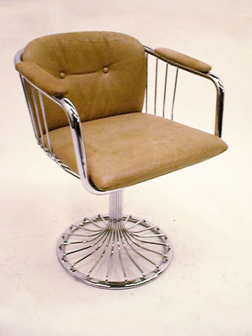 Chromschalensessel gestäbt mit beigefarbenen Ledersitz und Rückenkissen