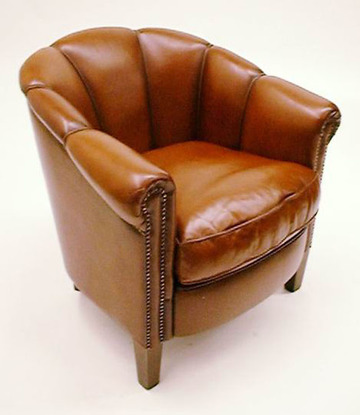 Pommysessel, fächerförmige Lehne, braun Leder, 20erJ., 75x80, h 74cm